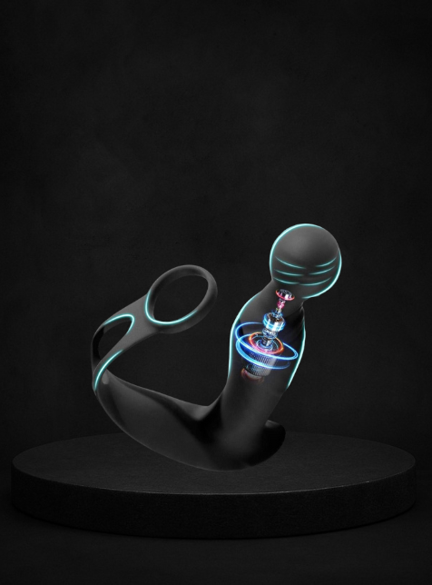Estimulador de próstata com 10 modos de vibração e rotação, controle remoto e design anatômico — 16 x 15 x 4,2 cm